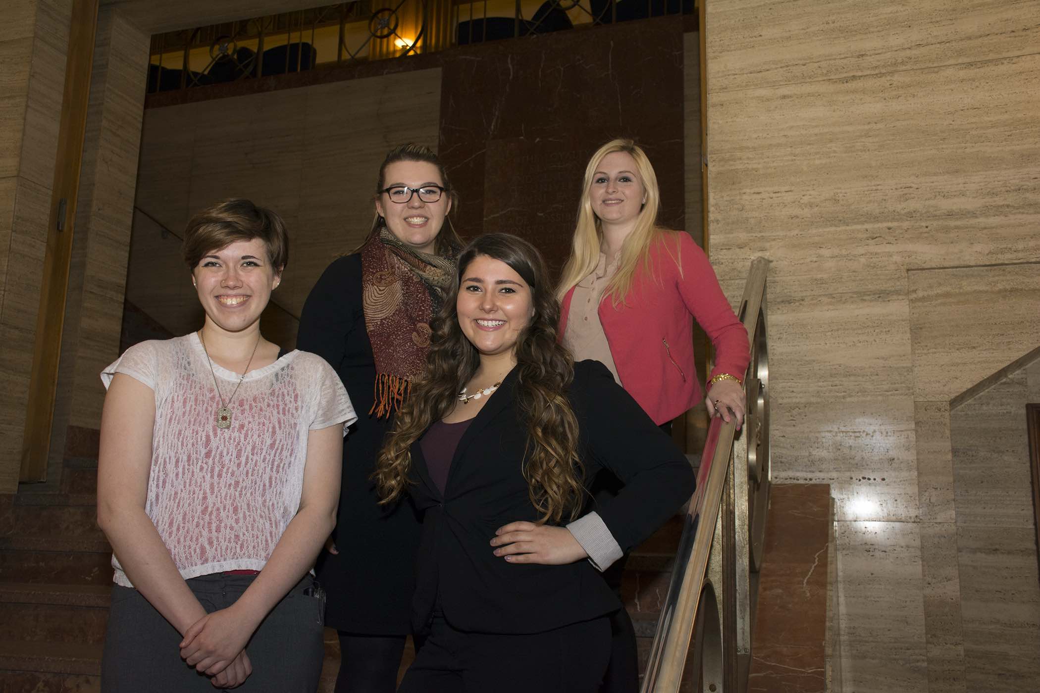 University of Maine Nickerson Scholarship recipients are, left to right, Allyson Eslin ’17, Madison Waterman ’17, Miranda Roberts ’18 and Jaymi Thibault ’17. Not pictured: Isabella DiPhilippo ’17, currently studying in Madrid, Spain. Photo by Heidi Martinson